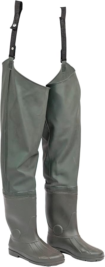 Stivali a coscia in pvc con saldature impermeabili dotato di cinturini di regolazione rapida; stivale impermeabile in pvc con suola a carrarmato antiscivolo