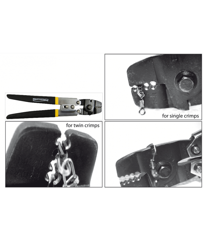 Le pinze crimping di Spro rendono semplice e veloce l’attacco di manicotti o crimps a varie lenze. Grazie alla loro forma particolare, le ganasce delle pinze consentono di chiudere i manicotti con facilità. Questo strumento è essenziale per gli appassionati di pesca che preferiscono creare autonomamente le loro montature e terminali. Inoltre, la lama incorporata permette di tagliare con facilità sia lenze monofilamento che fluorocarbon.