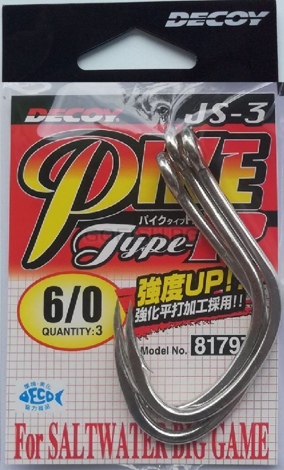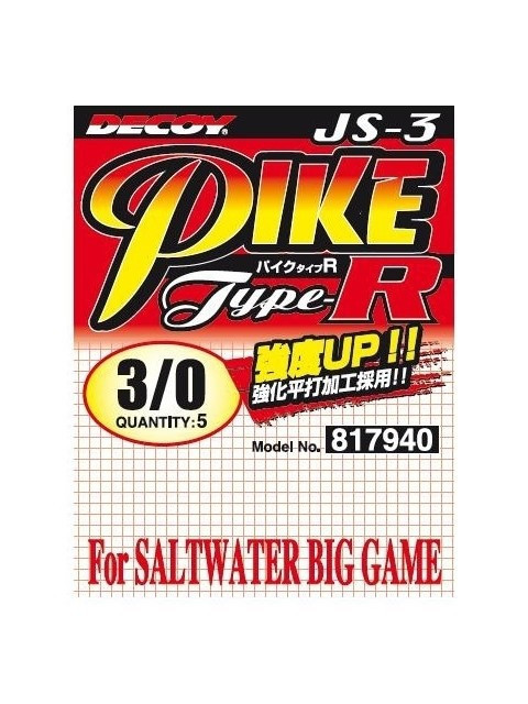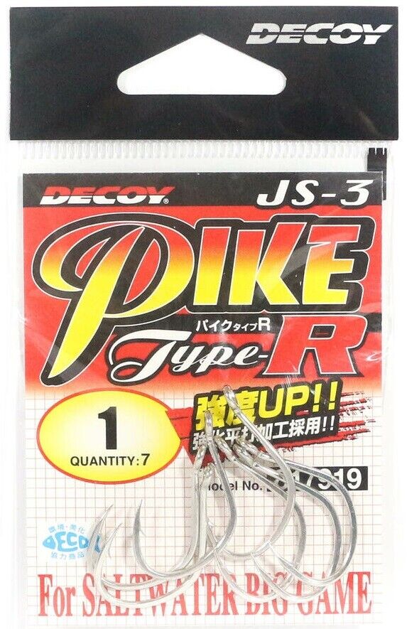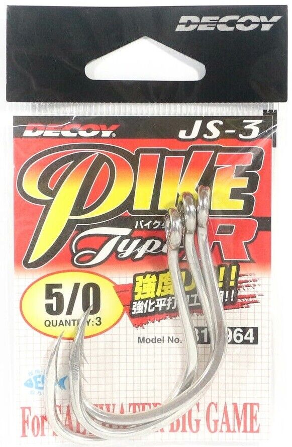 Il Pike Type-R JS-3 della Decoy è un amo pensato per il Saltwater con una forma particolare e molto leggero. Nelle misure grandi può essere utilizzato per il Big Gam, perfetto anche per creare ami per Assist Hook