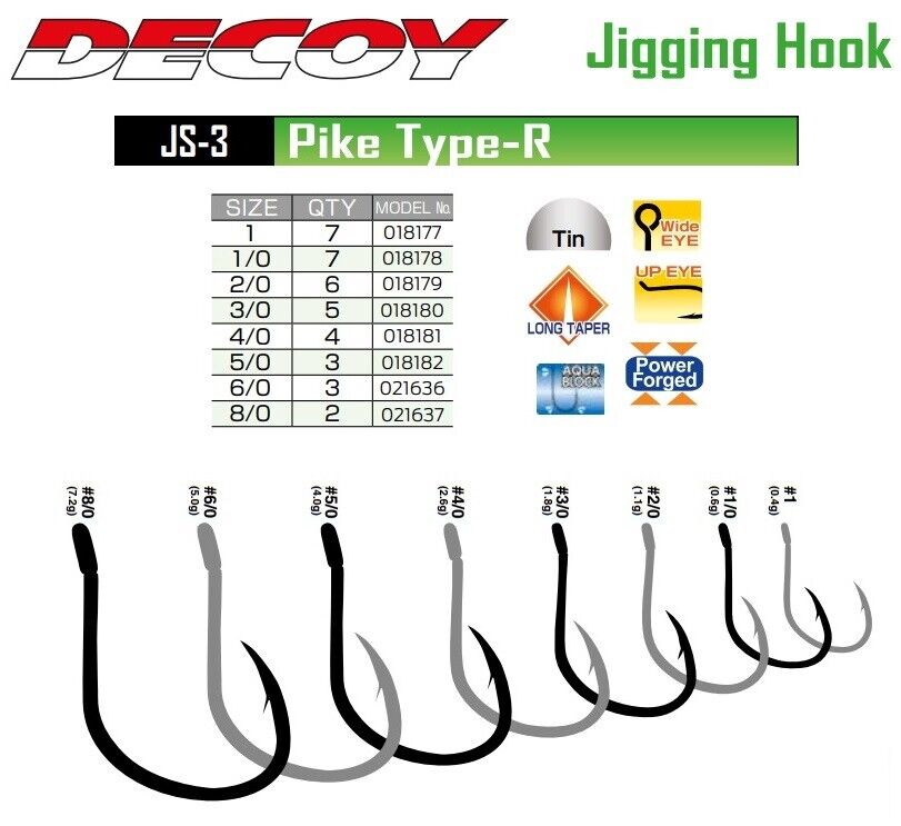 | Decoy Pike Type-r js-3 | 1, 1/0, 2/0, 3/0, 4/0, 5/0, 6/0, 8/0 |