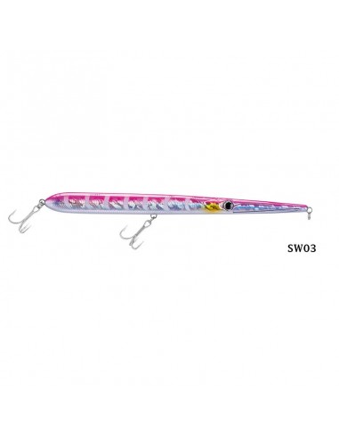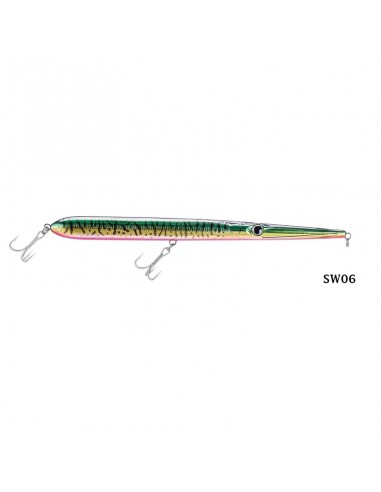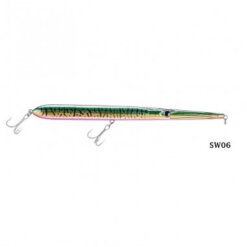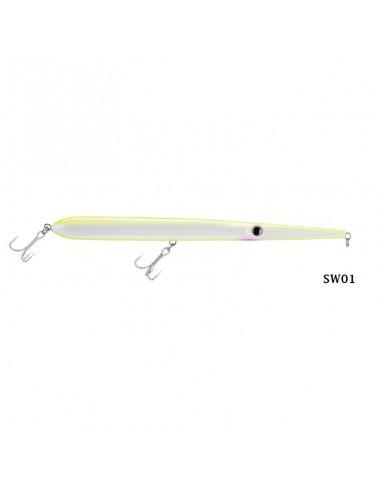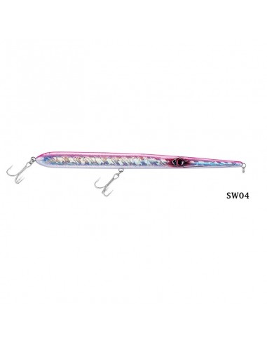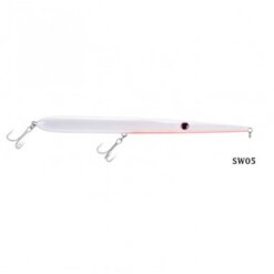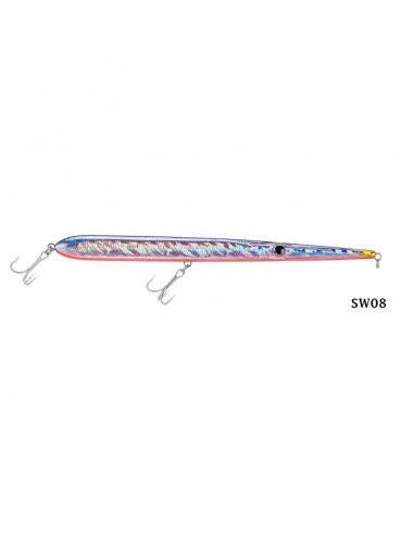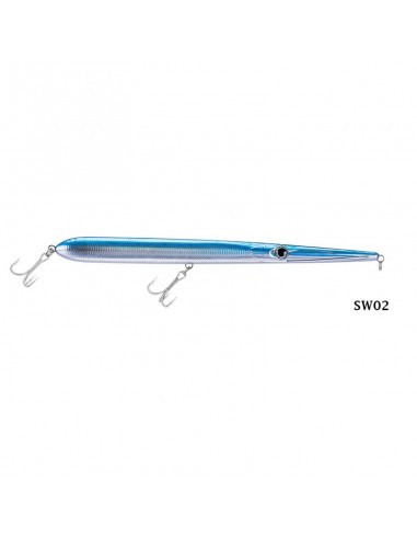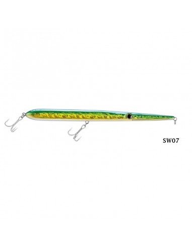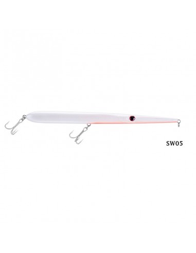 Akami STR Slider lures pencil bait, Sword, nato per gli appassionati di spinning, è capace di garantire ottime prestazioni in qualsiasi condizione di mare. La sua forma a “”penna””come una aguglia in pratica uno stilo lo rende estremamente aerodinamico, una particolarità che lo trasforma in lures molto versatile. Design innovativo dai colori brillanti ed occhi tridemensionali, montato con ancorette VCM 9626PS. Ideale per il topwater e la cattura di pesci come barracuda, leccia, spigola, lampuga, tonno, ricciola e pesce serra.