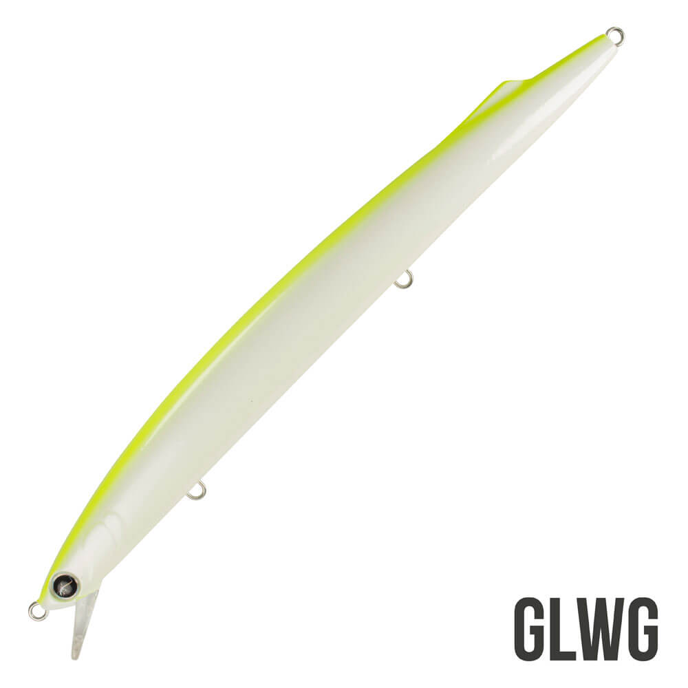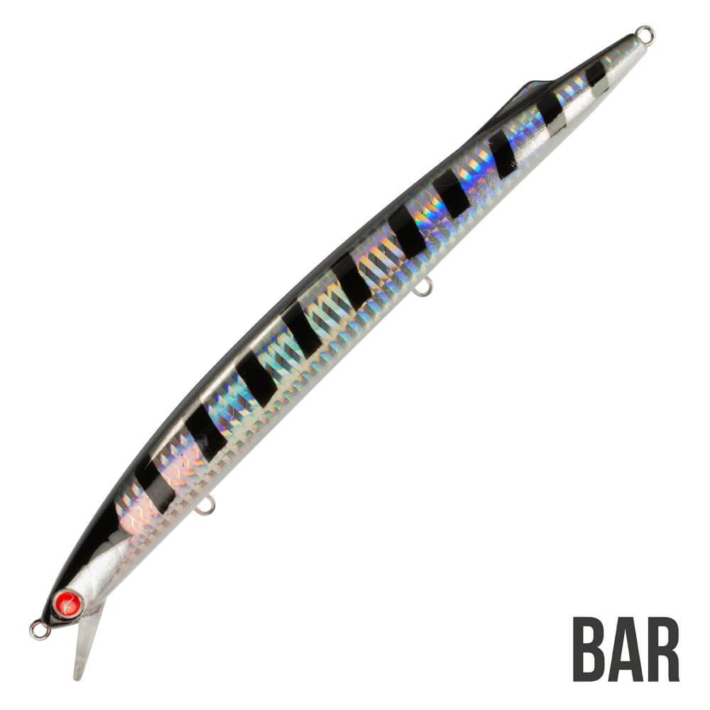 Il Mommotti 190 K è il long jerk fondamentale quando si stanno affrontando condizioni difficili di vento e mare. E’ stato progettato specificamente per garantire gittate molto lunghe durante il lancio anche in situazioni di vento contrario, condizione spesso off limits per molti artificiali tradizionali. Molto raffinata la “pinnetta” sul dorso che, oltre ad avere una funzione stabilizzatrice, richiama vagamente la fisionomia di un’aguglia. Rispetto ai modelli più piccoli della serie ha la paletta e le ancorette rinforzate. La capacità di lancio superiore è stata ottenuta grazie ad un peso di ben 35 g. in questo jerk dalla forma molto allungata. Ottimo comportamento alle jerkate e anche alle correnti trasversali. Indicato per tutte le specie di predatori, ma in particolare su pesci serra, spigole e barracuda. La leggera curvatura nella parte ventrale dell’artificiale crea un nuoto unico e più disordinato, in particolare durante le jerkate, che risulta essere estremamente catturante.
