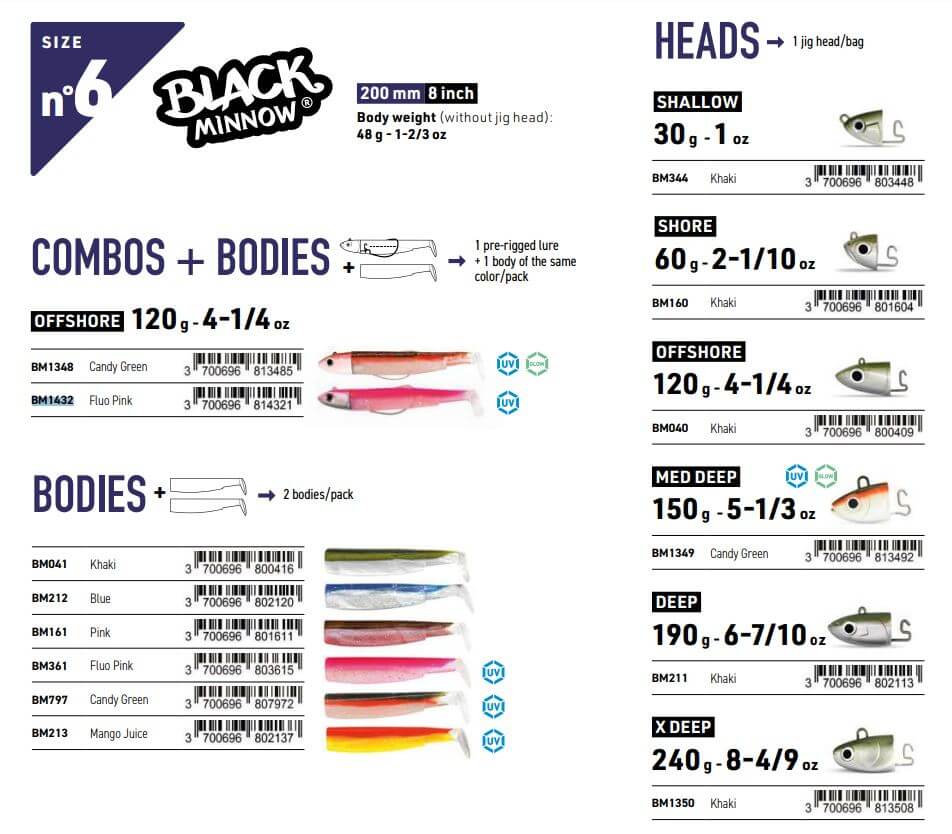 Il Corpo Fiiish Black Minnow 200 n°6 (2pz) sono delle confezioni contenti 2 corpi di ricambio per la taglia 200 n°6.