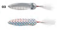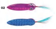 Le mangianze in offshore non sono sempre fatte da alacce e sardine ma spesso da cefalopodi a ridosso alacce e sardine ma spesso da cefalopodi a ridosso della superficie, nasce così Jatsui Lamina. Progettato della superficie, nasce così Jatsui Lamina. Progettato in Italia riproducendo la forma di un totanello da in Italia riproducendo la forma di un totanello da 5,5 cm. Un’esca da traina adatta a tutti i predatori 5,5 cm. Un’esca da traina adatta a tutti i predatori come tombarelli, alletterati, lampughe ecc. L’ampia come tombarelli, alletterati, lampughe ecc. L’ampia selezione colori è arricchita in pancia da insert selezione colori è arricchita in pancia da insert olografici o con effetto abalone per aumentarne il olografici o con effetto abalone per aumentarne il richiamo visivo. Le piume sull’amo ne mimetizzano richiamo visivo. Le piume sull’amo ne mimetizzano l’aspetto creando movimenti sinuosi in coda.