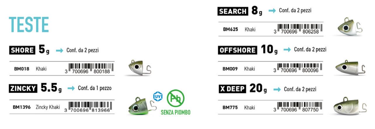 Le diverse taglie devono essere abbinate con taglie e corpi dello stesso N°, ad esempio alla testina N°1 andremmo ad abbinare un corpo da 7 cm (BM70) e un amo N°1.