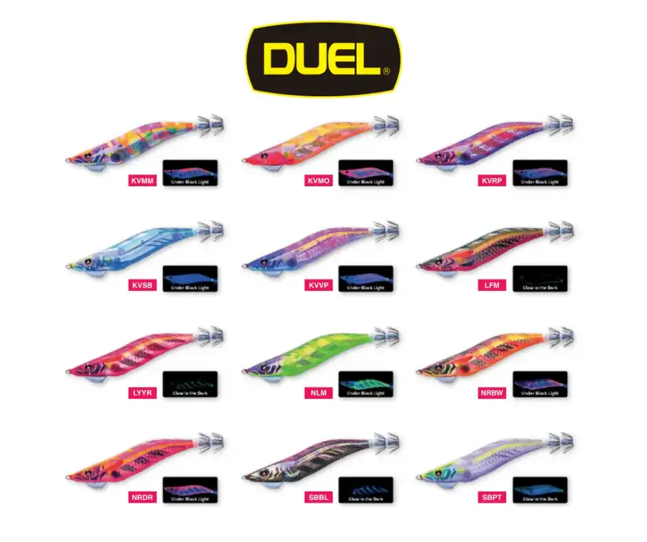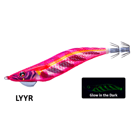 LYYR – Un colore appositamente progettato per l’uso in situazioni di scarsa illuminazione, come notti buie o nuvolose. Il colore a base rossa rende la silhouette chiara in condizioni di scarsa illuminazione, rendendola più facile da vedere per i calamari ed efficace al buio.
