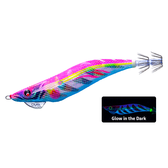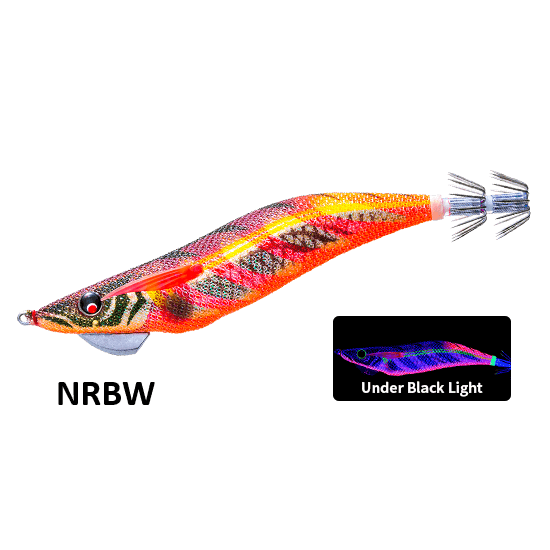 NRDR – Adotta un corpo rosso Neon Flash® che emette luce ultravioletta offrendo allo stesso tempo una silhouette chiara. Anche nelle giornate nuvolose, quando i raggi UV sono deboli, l’aggiunta di un effetto silhouette aumenta il potere attrattivo del calamaro.