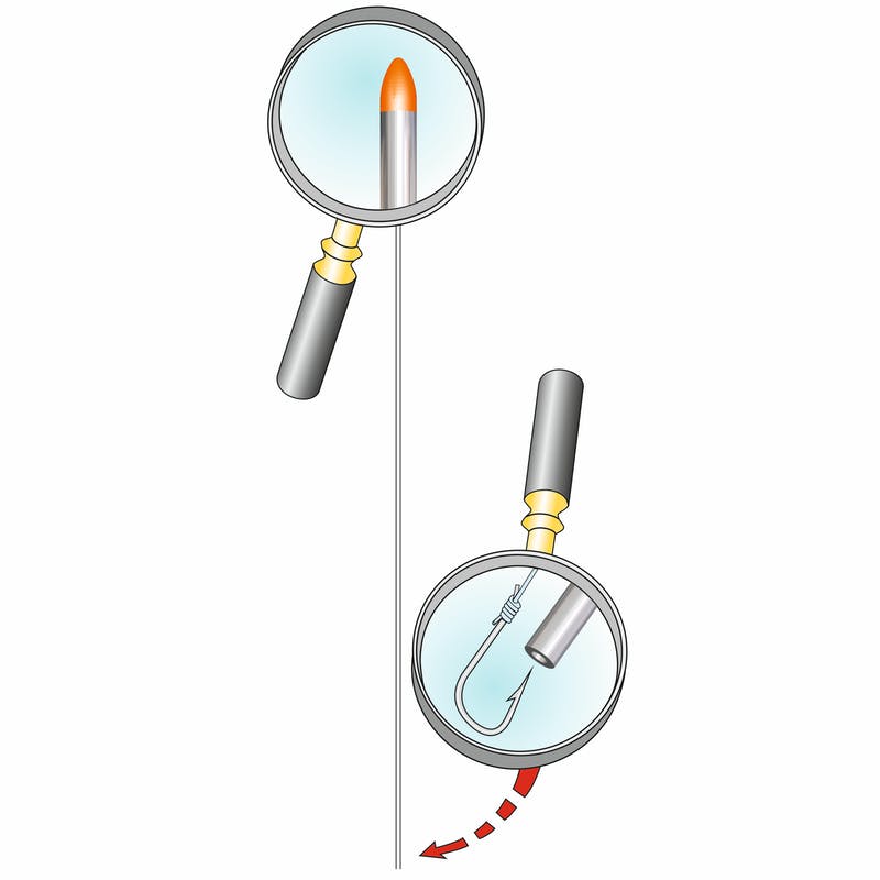 Aghi testa rossa infila vermi tubolari in acciaio inox con punta in materiale plastico super scorrevole. Il colore fluorescente visibilissimo della punta e la sua forma ogivale servono a prevenire deviazioni indesiderate della traiettoria di innesco.