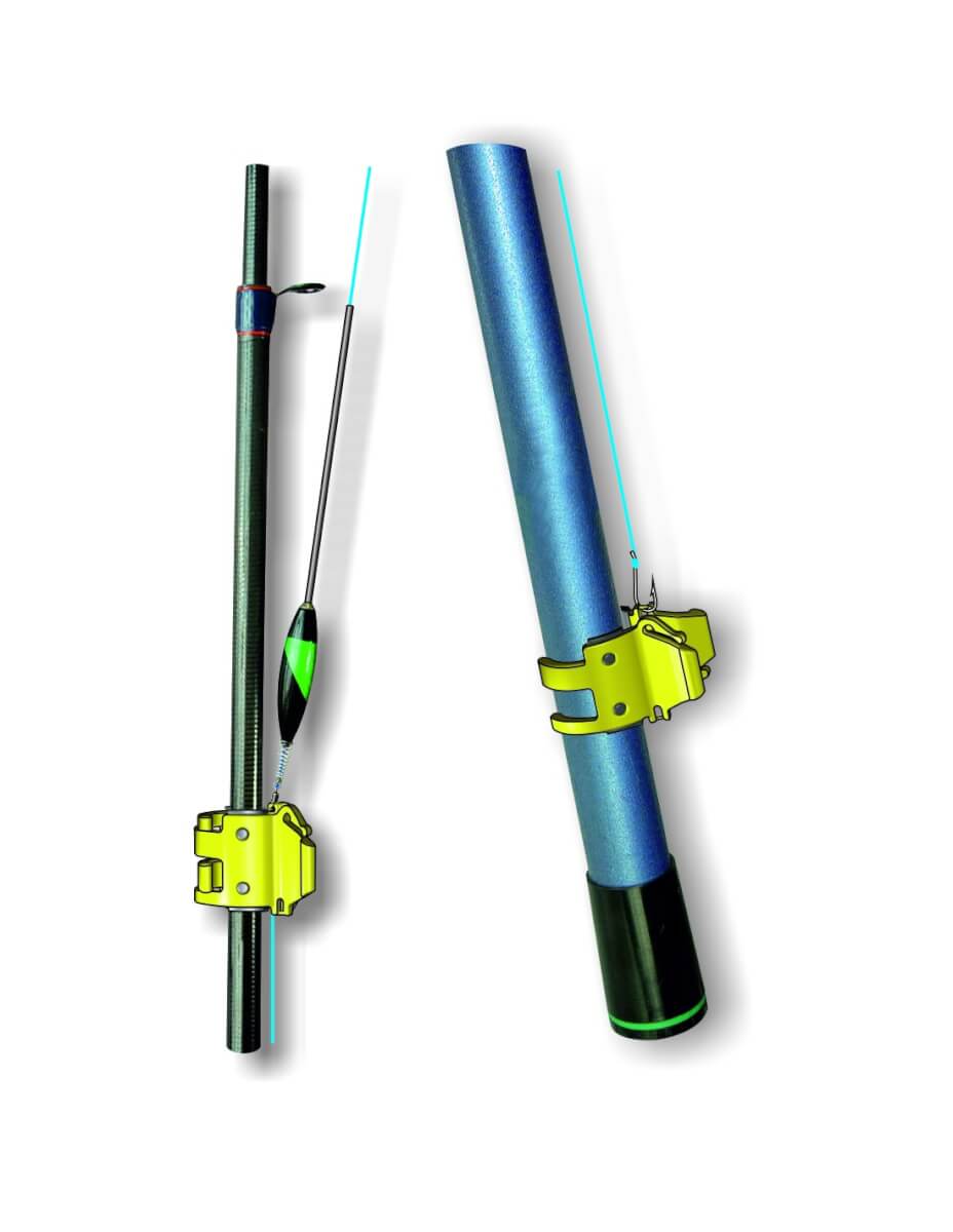 Clip Stonfo a molla con guancette in gomma antiscivolo. Studiata appositamente per la pesca alla trota. Sostiene saldamente la bombarda, striscio etc. sulla canna durante gli spostamenti. Blocca il filo lungo la canna da pesca quando viene riposta.