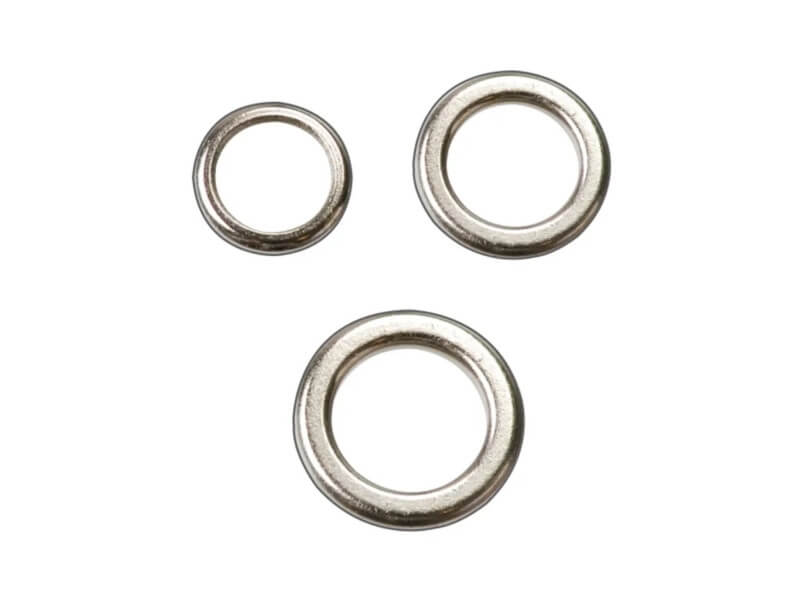 Anelli Stonfo in metallo pieno perfettamente levigati per il montaggio degli ami sull’esca artificiale.