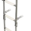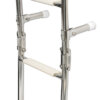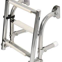 In acciaio inox lucidato a specchio per il fissaggio su poppa, modello con gradini con superficie ovalizzata. Il gradino ovale, rispetto ai tradizionali tondi, é molto più agevole e comodo nell’uso. I gradini nella parte superiore sono ricoperti di pedana in plastica antiscivolo.
