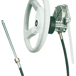 Osculati sistema di guida rotativo per motori fuoribordo, entrobordo, entrofuoribordo, fino a 9/10 m e velocità massima 50 MPH, giri volante 3, raggio minimo curvatura 200 mm, corsa 228 mm.